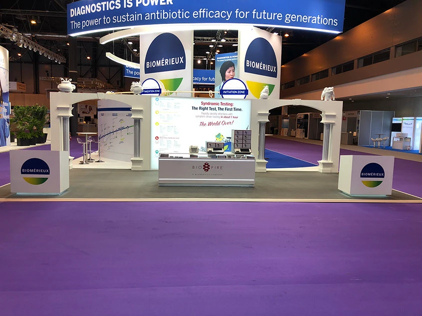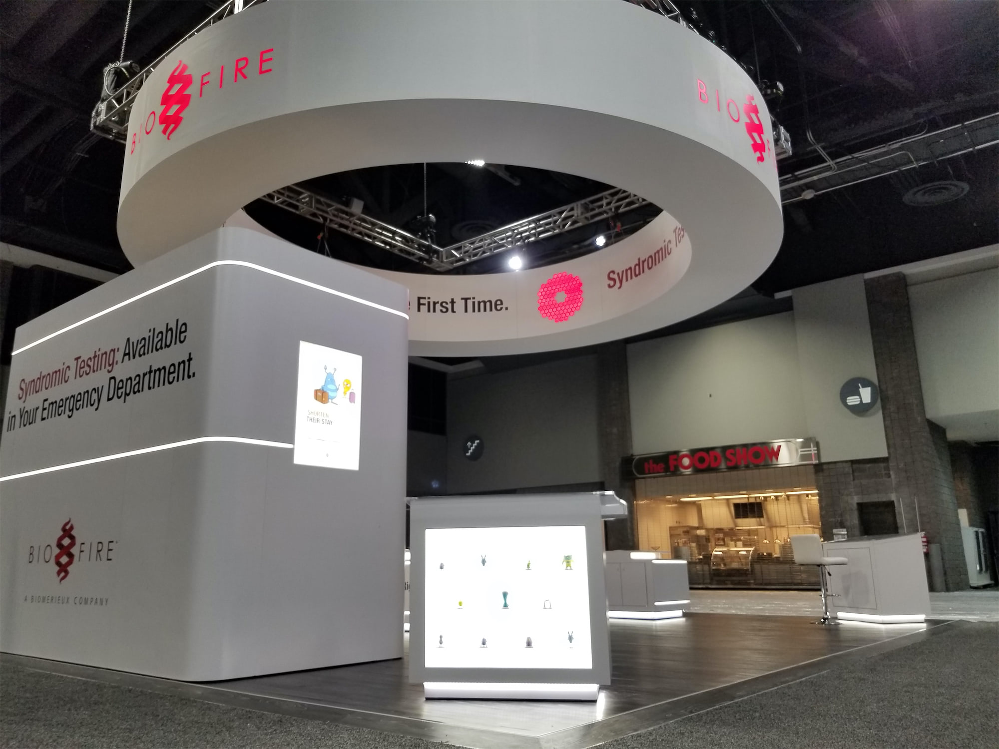 PROJECT BIOFIRE HIGHLIGHTS E SIZE: 10m x 5m E Custom built seamless hanging sign E Storage closet with LED lighted accents E Raised flooring with LVP tiles E Touch Screen kiosks E Biofire Bug built in display E Large Demo Counters FROM RENDER TO REALITY RELATED WORK KROLLInternational, Our Work CO DIAGNOSTICS – international 2International, Our Work LTN International 2022International, Our Work LTN International 2023International, Our Work « Older Entries Gallery [dsm_before_after_image _builder_version=”4.6.3″ _module_preset=”default” _i=”1″ _address=”5.0.0.1″ /] Production