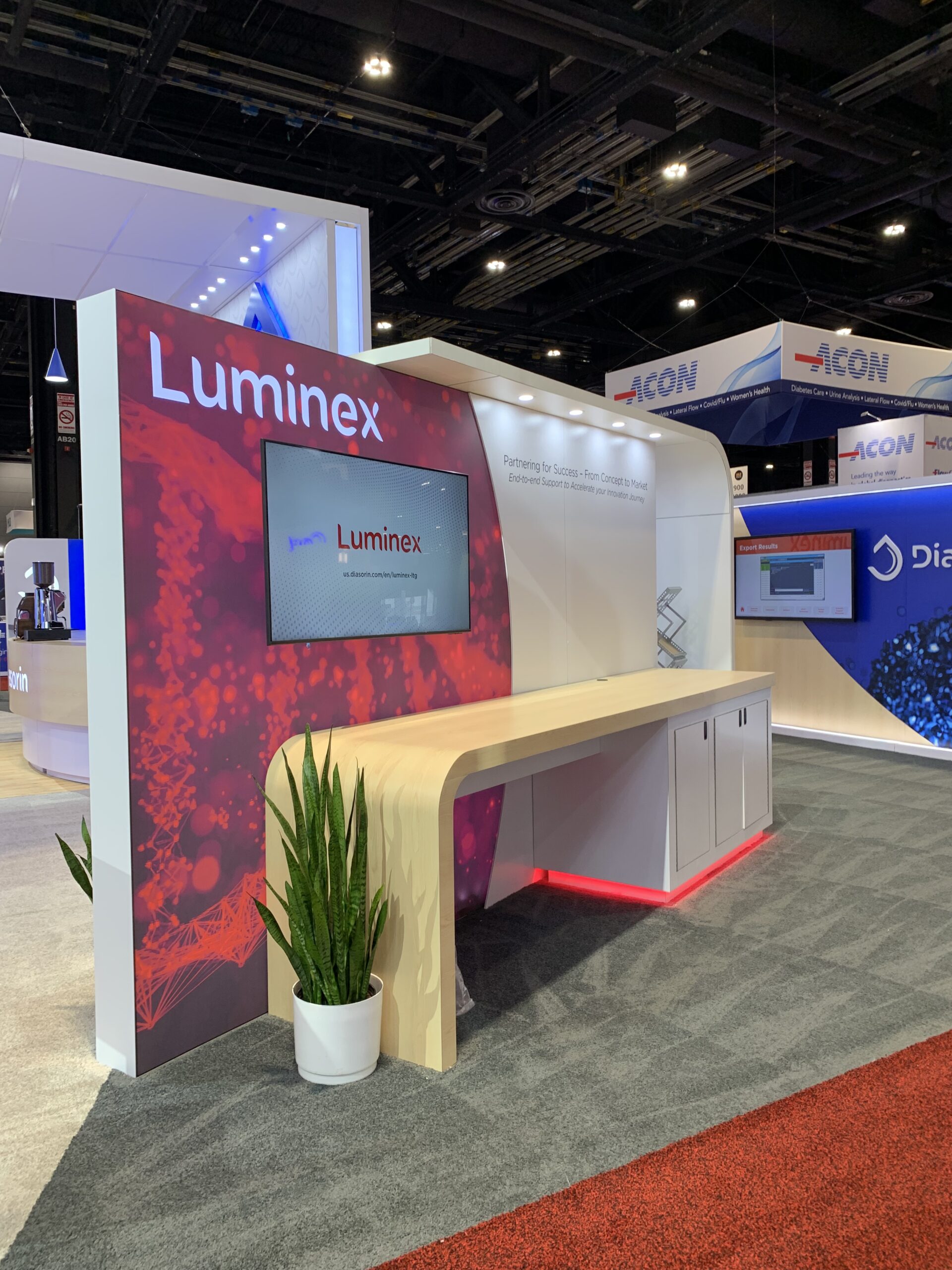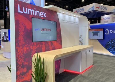 Jack Link’s is a custom hybrid booth that features a large video wall, seamless SEG application, and custom metal frame fabrication. This booth was featured by beMatrix USA in their monthly newsletter recognizing the use of aluminum panels in a custom application.