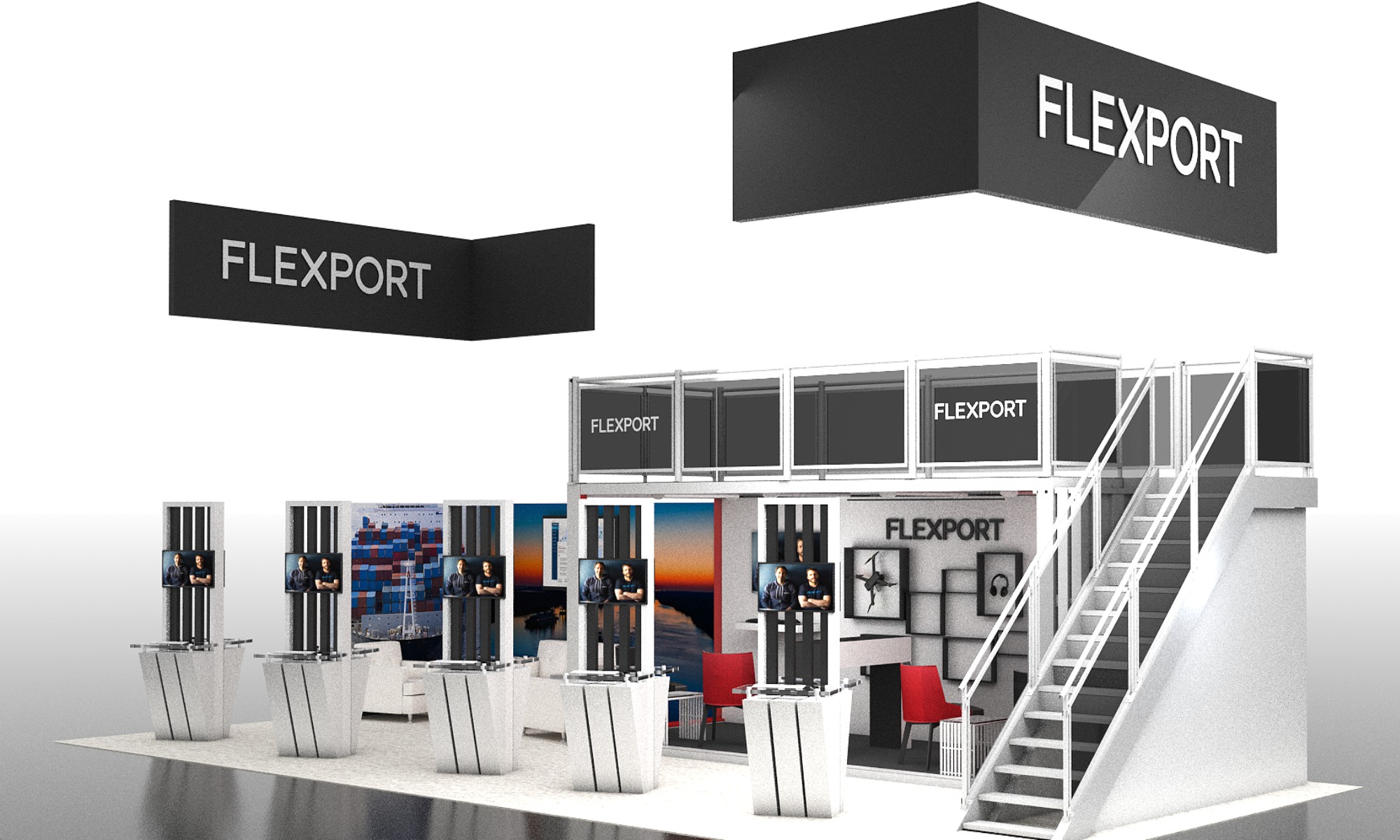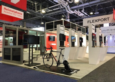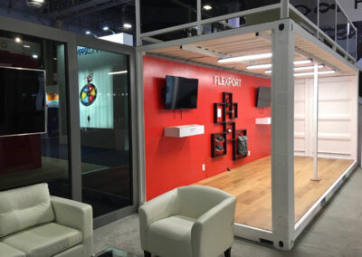 PROJECT FLEXPORT Tradeshow HIGHLIGHTS E SIZE: VARIOUS E Shipping Container Deck E Demo station kiosks E Experiential biking area E Lounge area on top of deck E Tinted acrylic features FROM RENDER TO REALITY RELATED WORK CO-DXOur Work, Trade Show Booths DOMEXFeatured Work, Our Work, Trade Show Booths Flexport – TradeshowOur Work, Trade Show Booths Equator CoffeeOur Work, Trade Show Booths « Older Entries Trade Show RISE Project Flexport Gallery