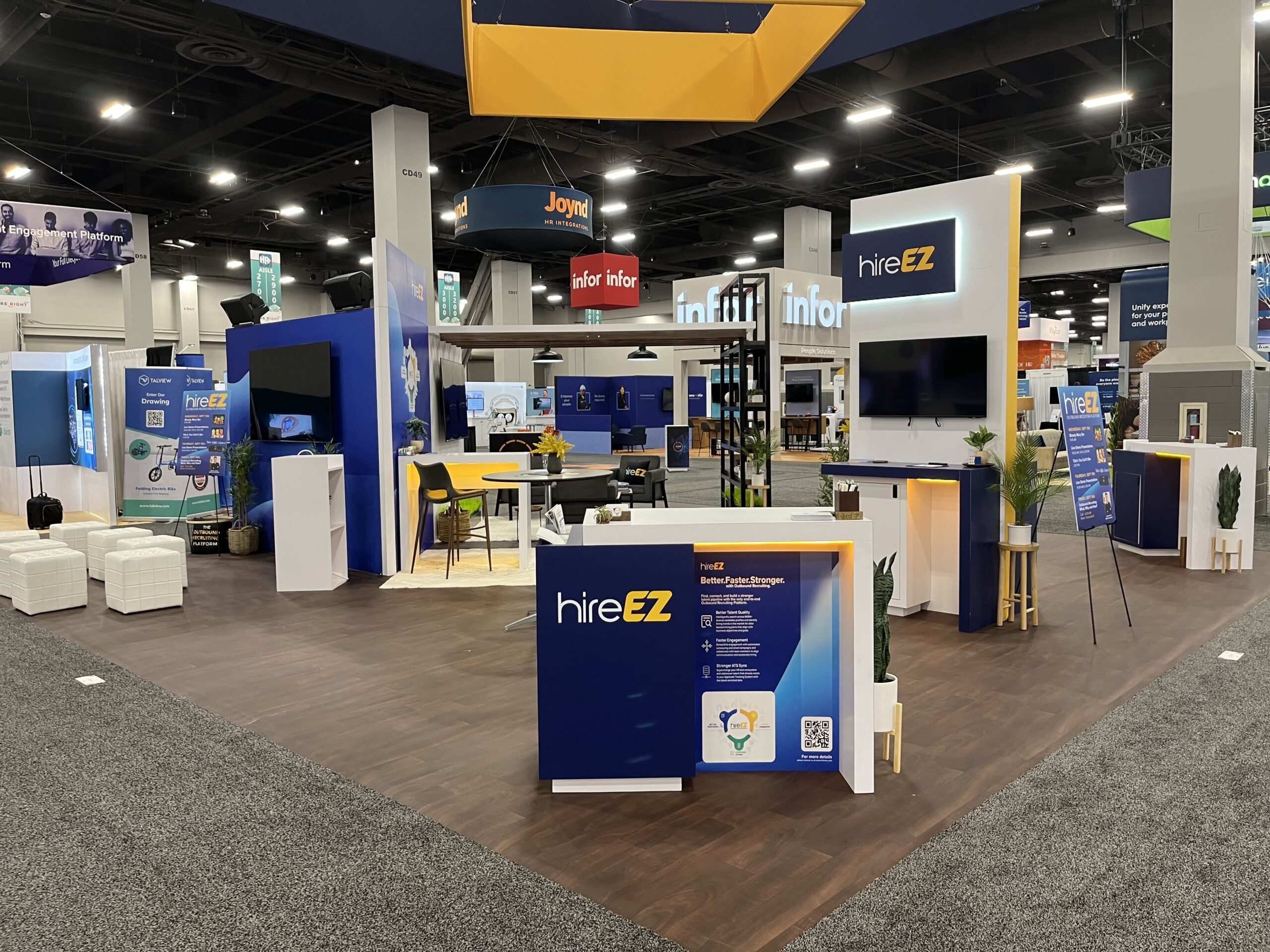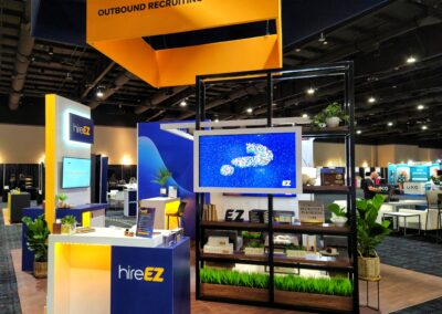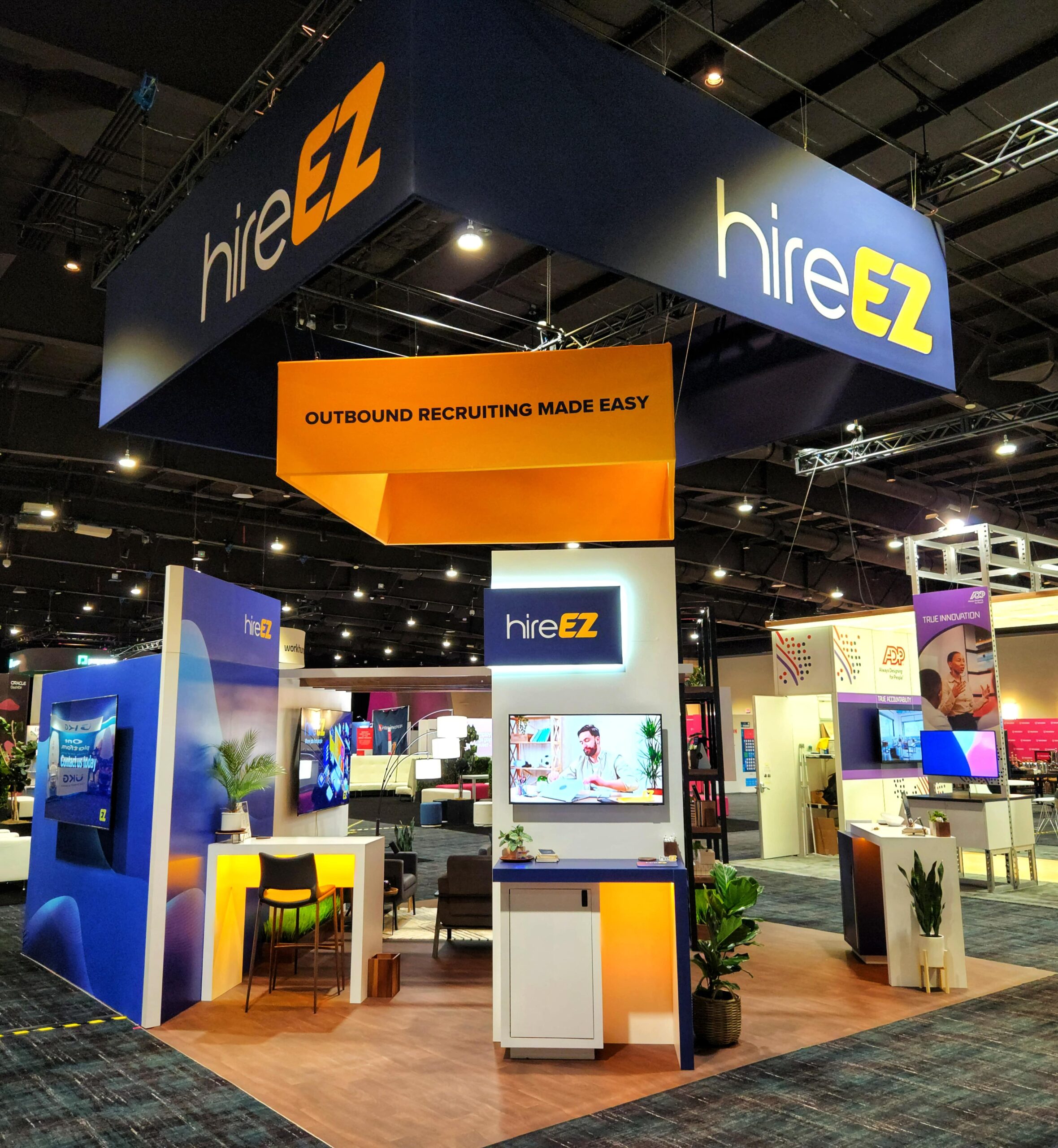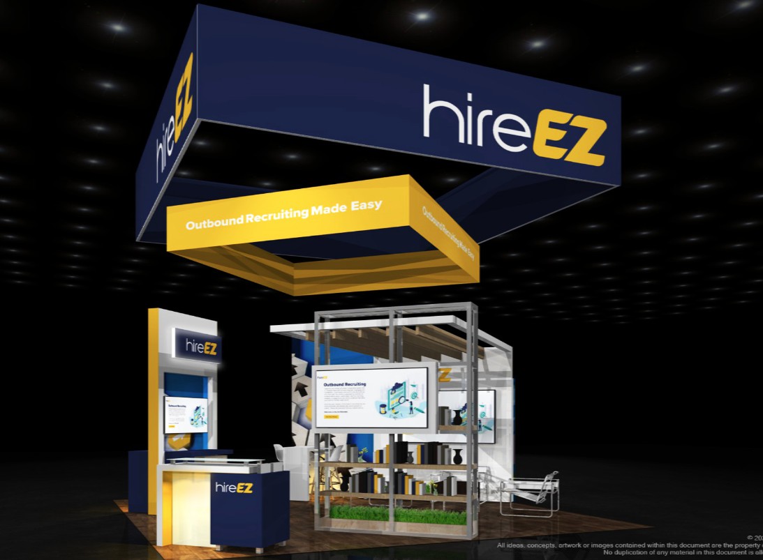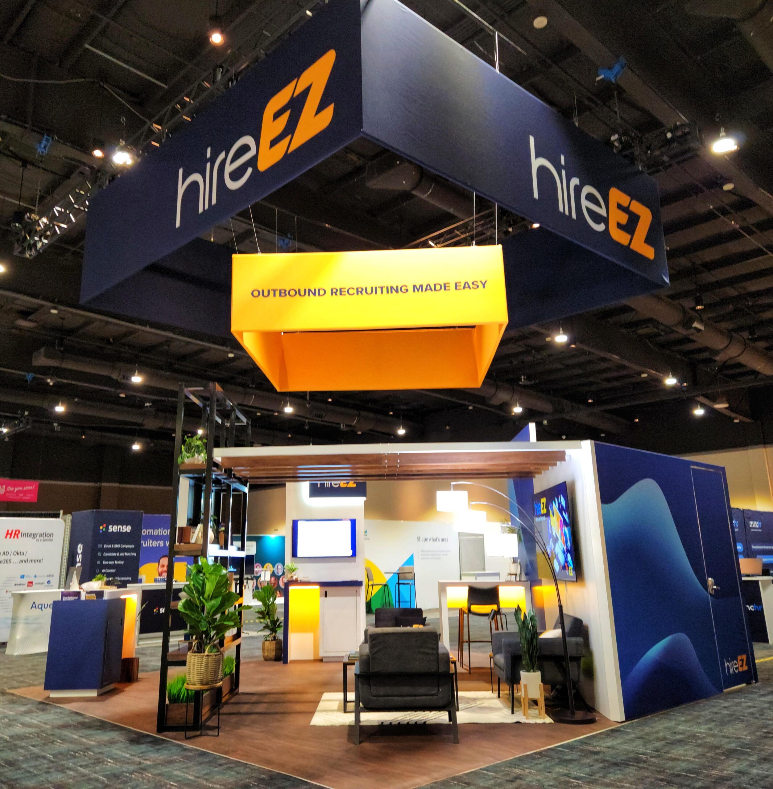 PROJECT HIREEZ HIGHLIGHTS E SIZE: 20x20 /30x30 E Double tiered hanging sign E Wood toned canopy E Aluminum powder coated shelving display E Living room lounge area E Double sided demo station E Large storage closet E RGB lighted counters VIDEOS & MEDIA FROM RENDER TO REALITY RELATED WORK CO-DXOur Work, Trade Show Booths DOMEXFeatured Work, Our Work, Trade Show Booths Flexport – TradeshowOur Work, Trade Show Booths Equator CoffeeOur Work, Trade Show Booths « Older Entries