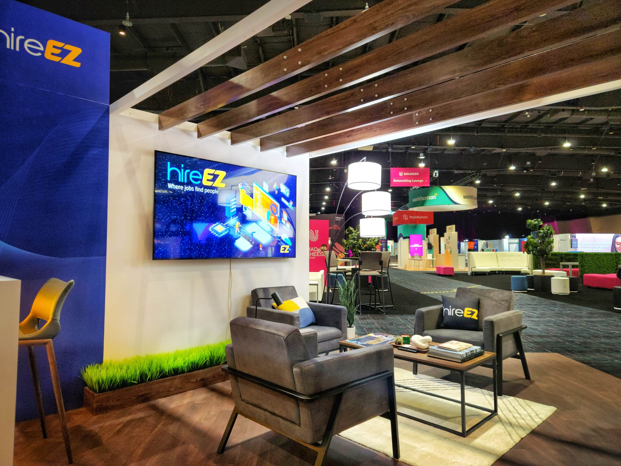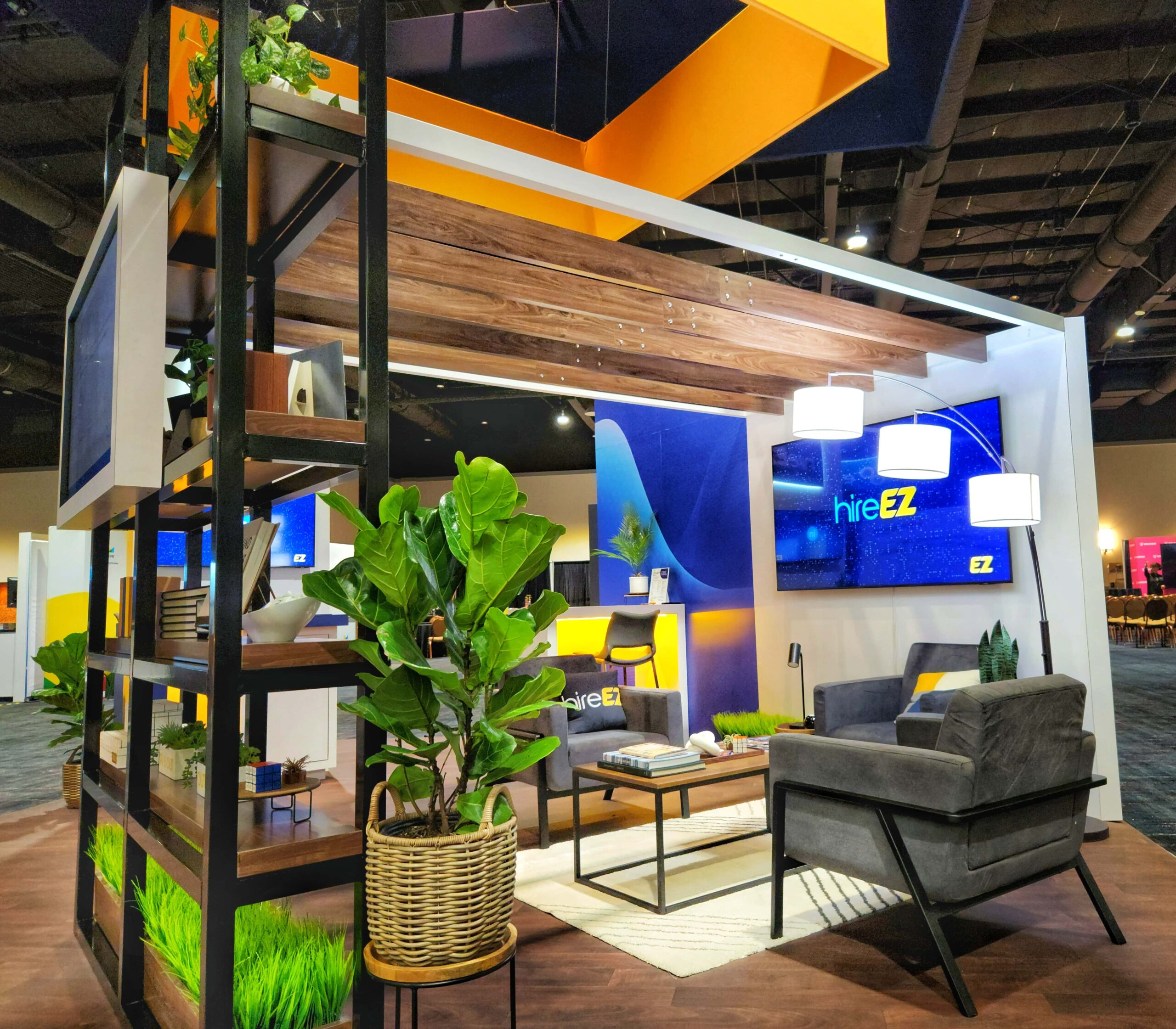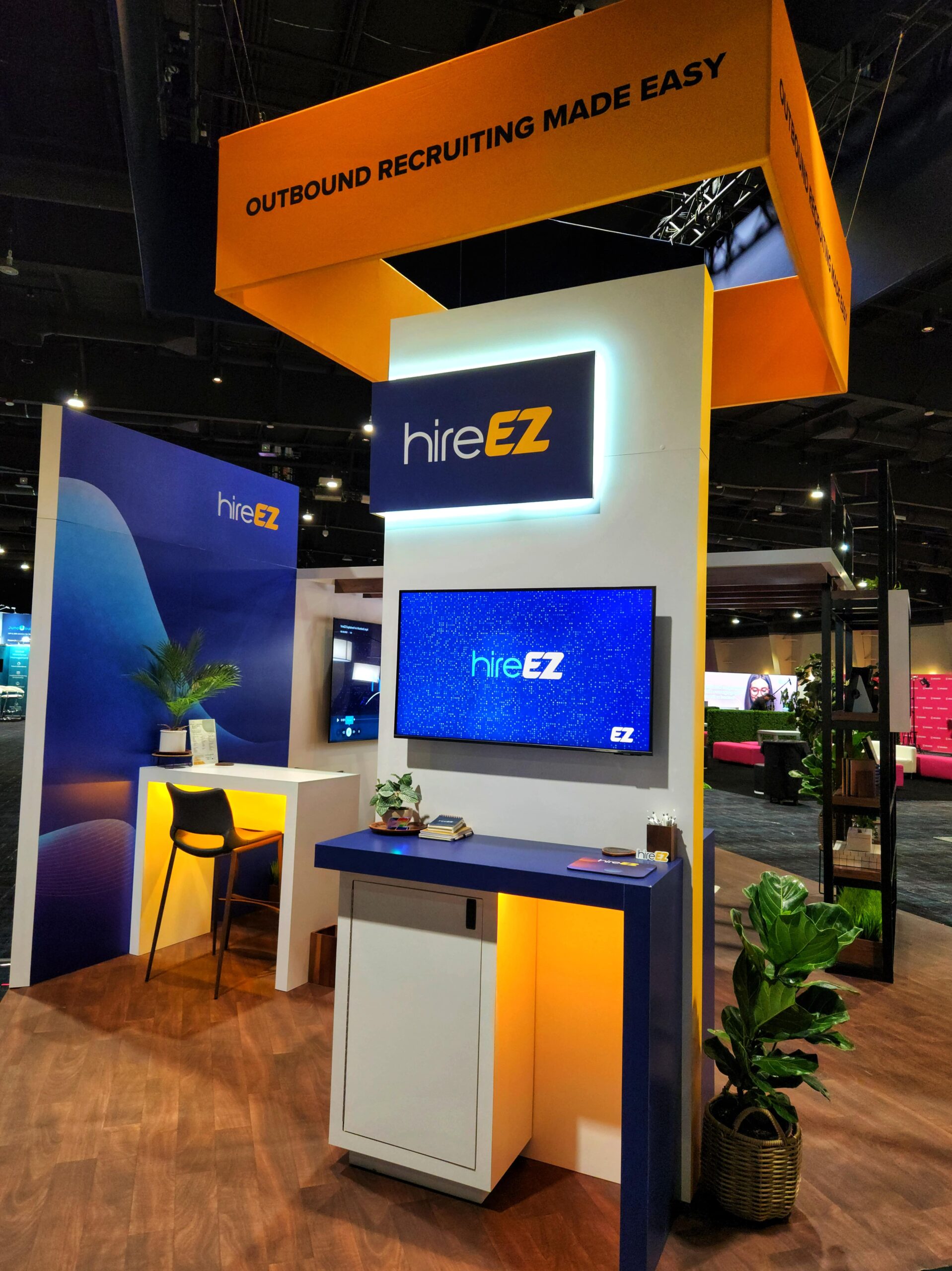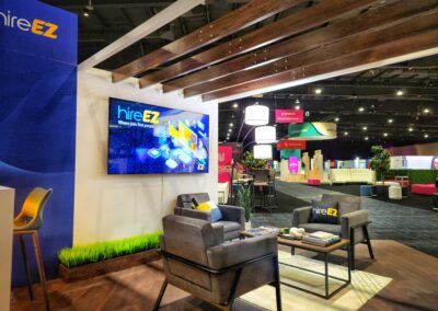 PROJECT HIREEZ HIGHLIGHTS E SIZE: 20x20 /30x30 E Double tiered hanging sign E Wood toned canopy E Aluminum powder coated shelving display E Living room lounge area E Double sided demo station E Large storage closet E RGB lighted counters VIDEOS & MEDIA FROM RENDER TO REALITY RELATED WORK CO-DXOur Work, Trade Show Booths DOMEXFeatured Work, Our Work, Trade Show Booths Flexport – TradeshowOur Work, Trade Show Booths Equator CoffeeOur Work, Trade Show Booths « Older Entries