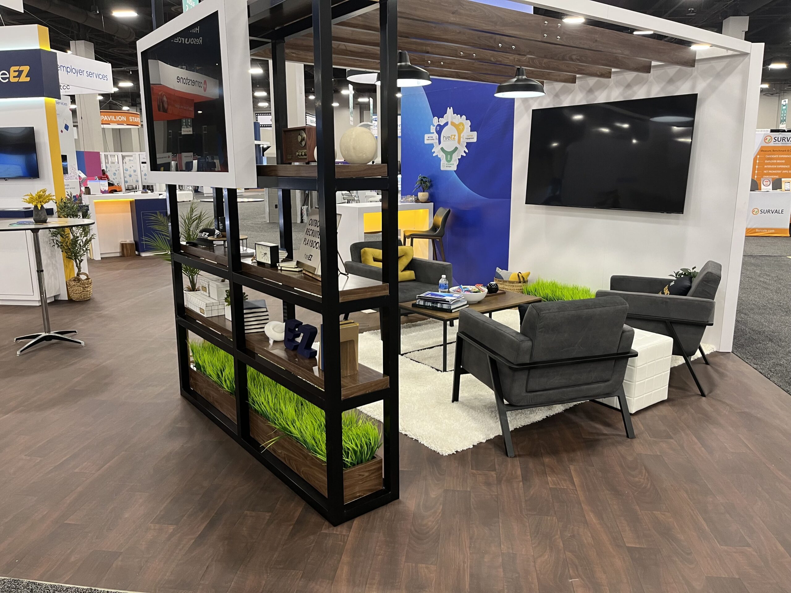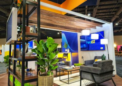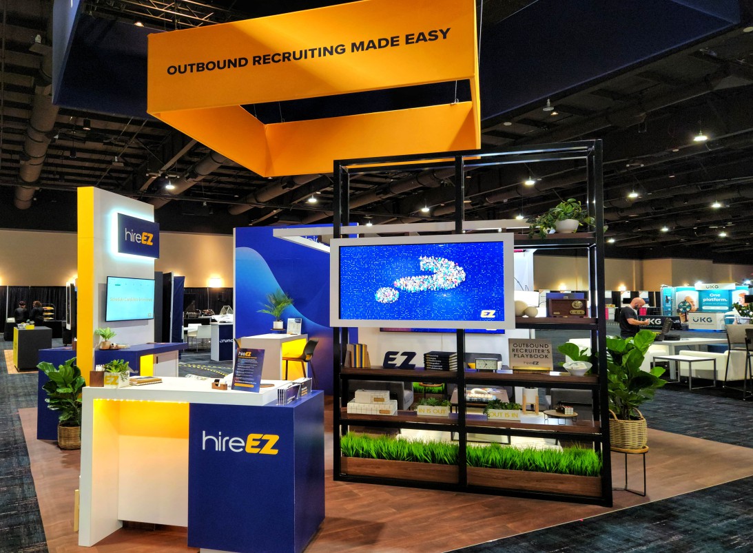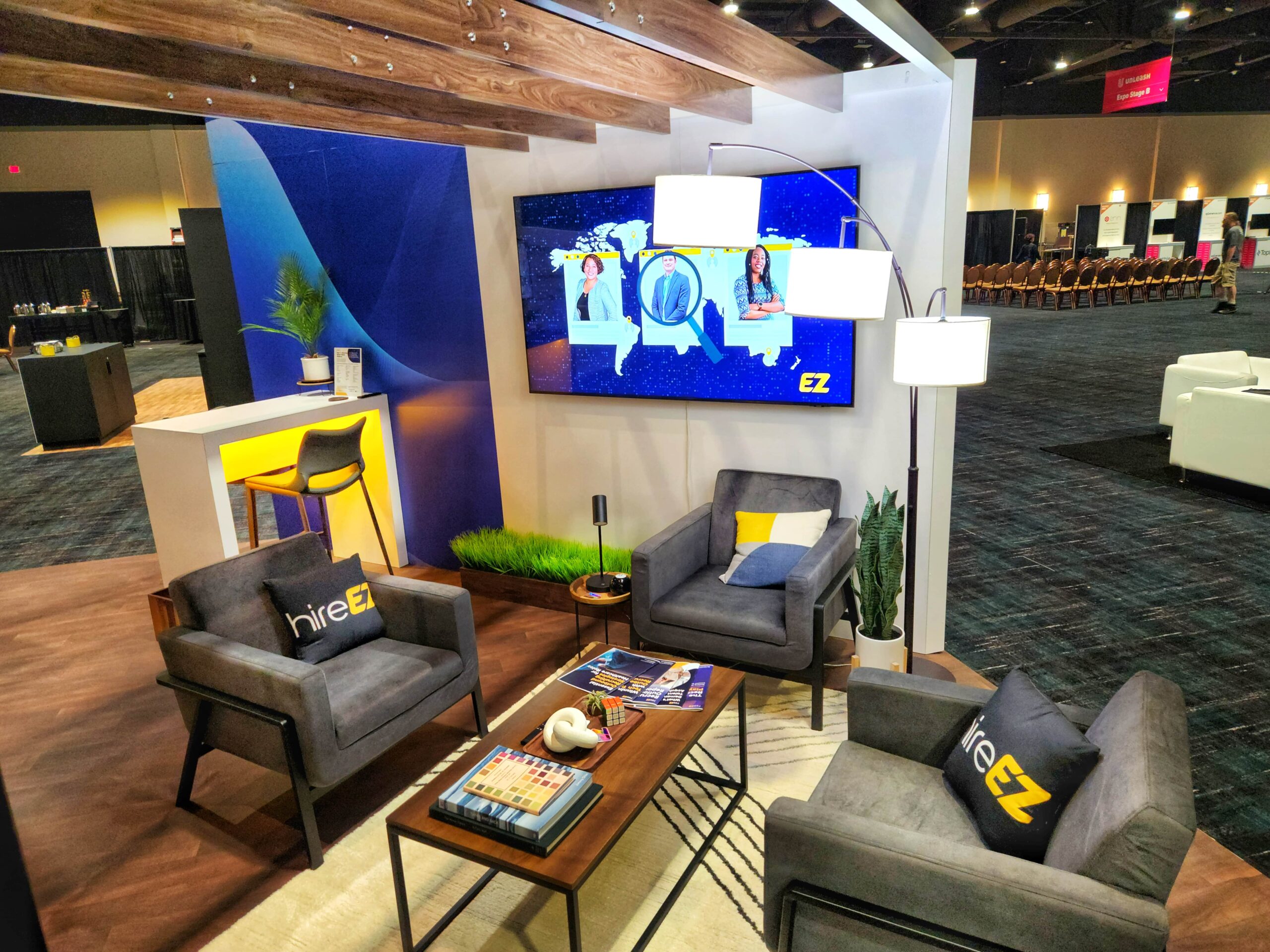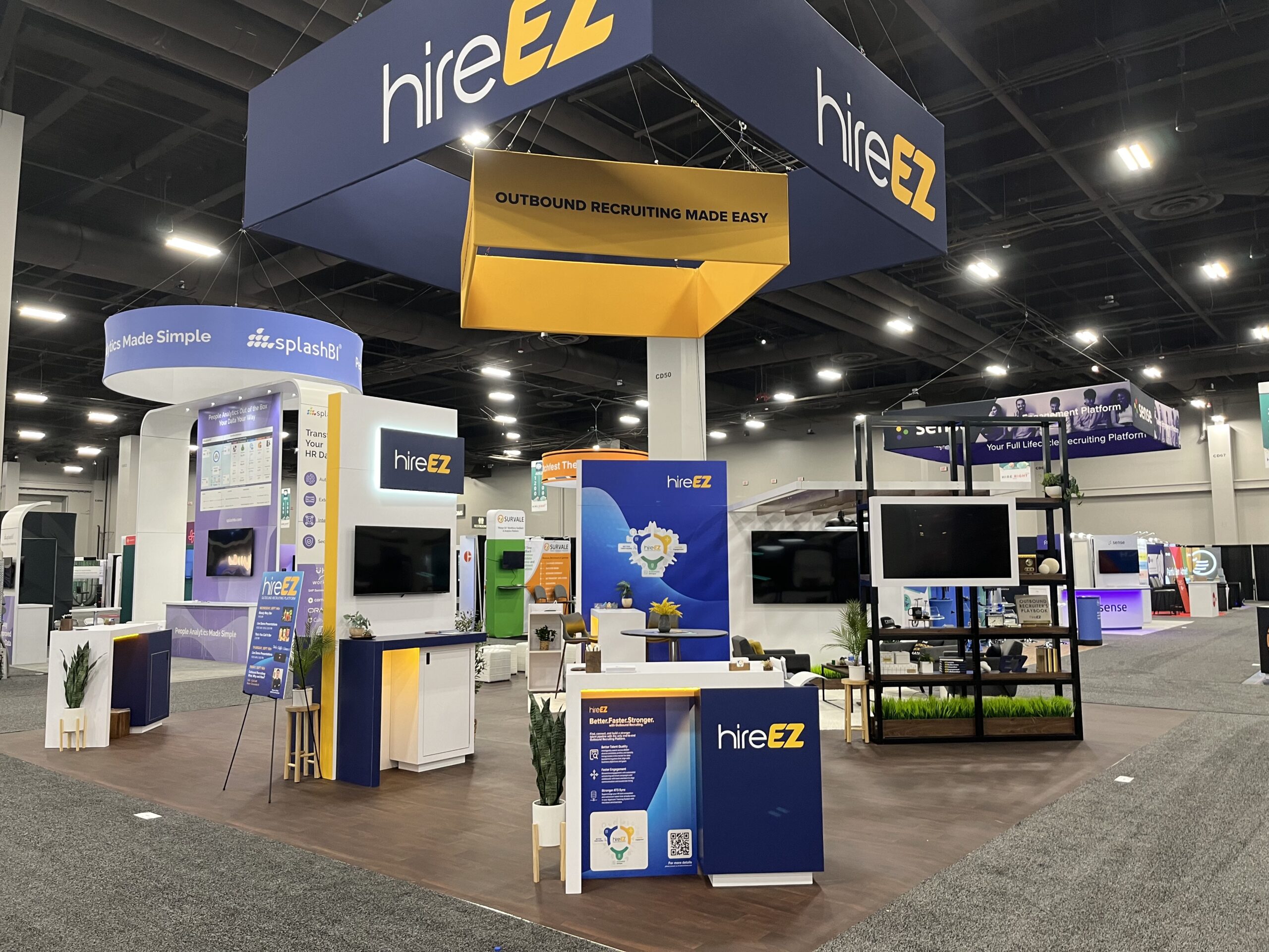 PROJECT HIREEZ HIGHLIGHTS E SIZE: 20x20 /30x30 E Double tiered hanging sign E Wood toned canopy E Aluminum powder coated shelving display E Living room lounge area E Double sided demo station E Large storage closet E RGB lighted counters VIDEOS & MEDIA FROM RENDER TO REALITY RELATED WORK CO-DXOur Work, Trade Show Booths DOMEXFeatured Work, Our Work, Trade Show Booths Flexport – TradeshowOur Work, Trade Show Booths Equator CoffeeOur Work, Trade Show Booths « Older Entries
