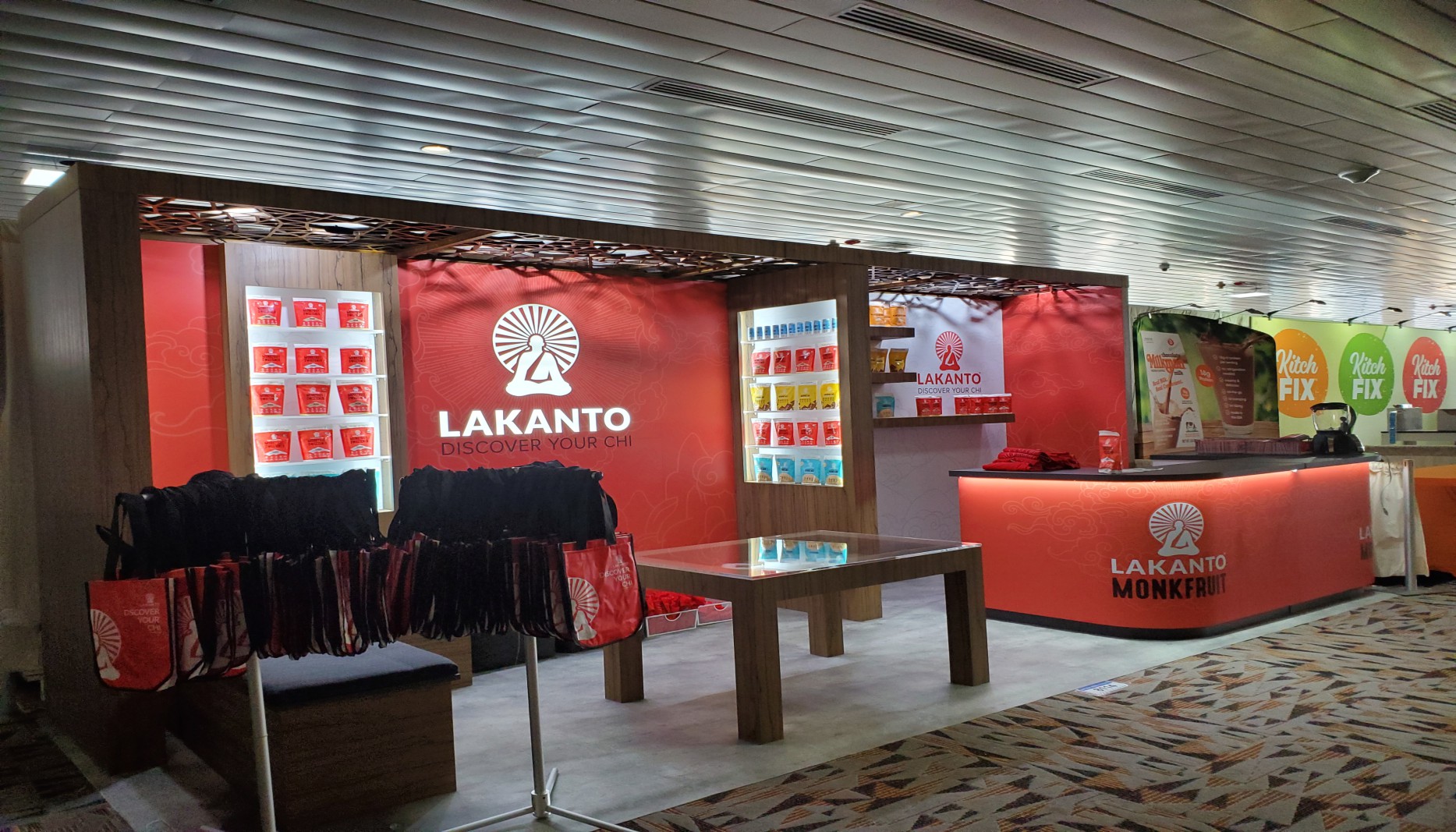 MILK BAR’s design was to aim for a permanent look in a temporary space, which was achieved through a tiled backsplash, neon signage, and built-in lit shelving.
