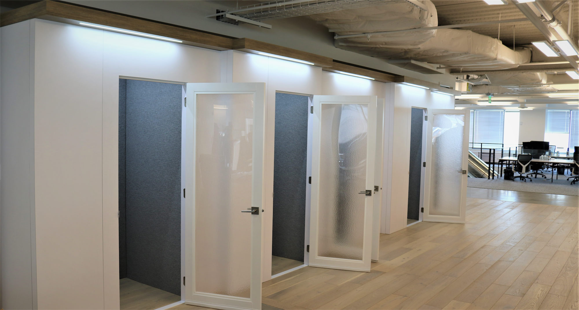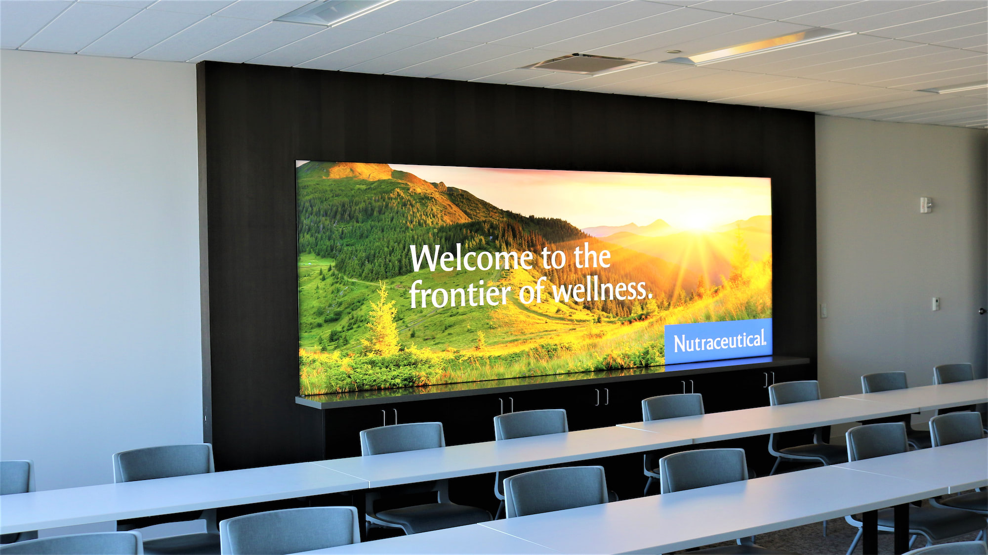 RISE Exhibits recently completed a custom buildout for Nutraceuticals at their downtown Salt Lake City office. Our team designed and installed custom soundproof phone booths equipped with motion sensors that automatically manage lighting for energy efficiency. We also created a custom reception counter featuring replaceable backlit graphics and a curved acrylic display with remote-controlled RGB uplighting. Additionally, we upgraded their conference room with a large, replaceable backlit graphic to create a warm and inviting atmosphere suitable for various high-profile meetings.