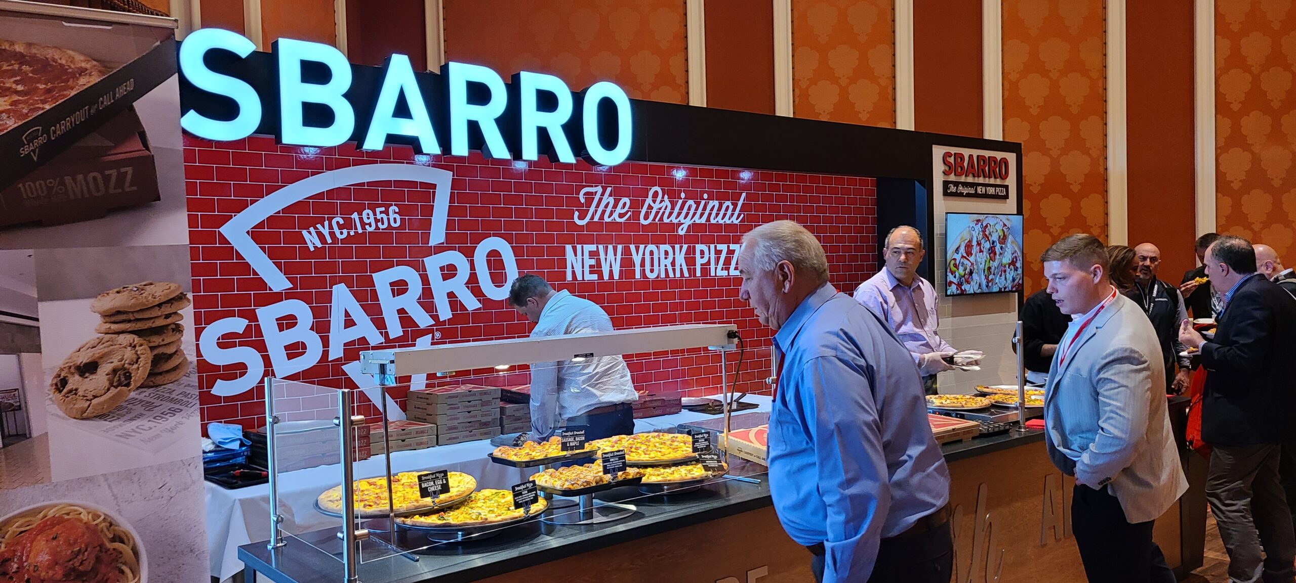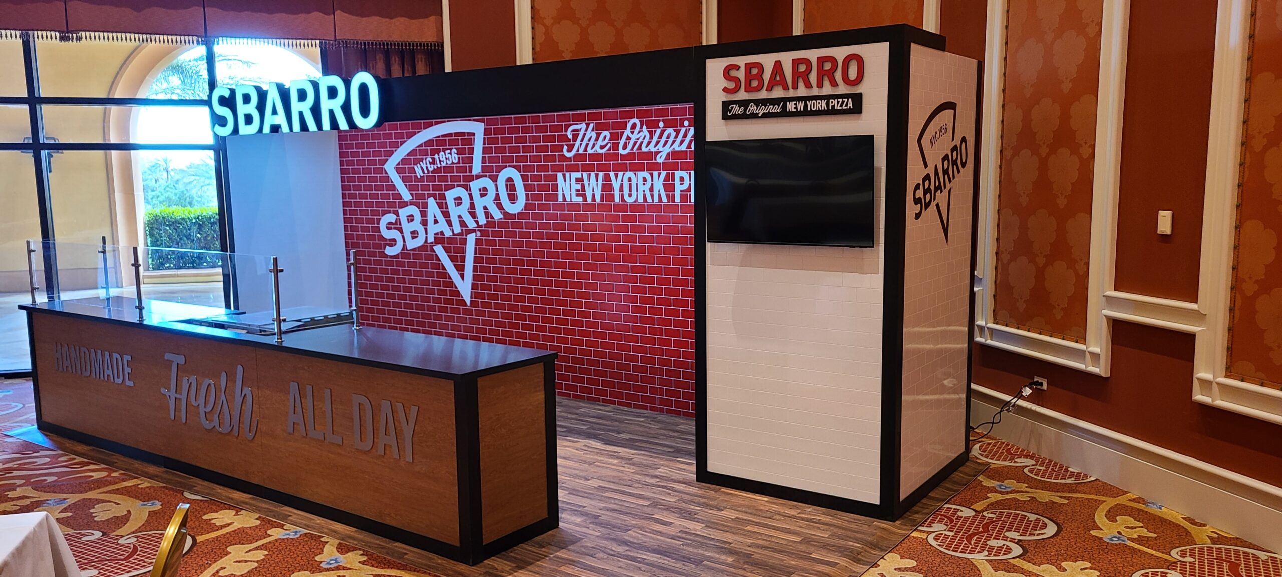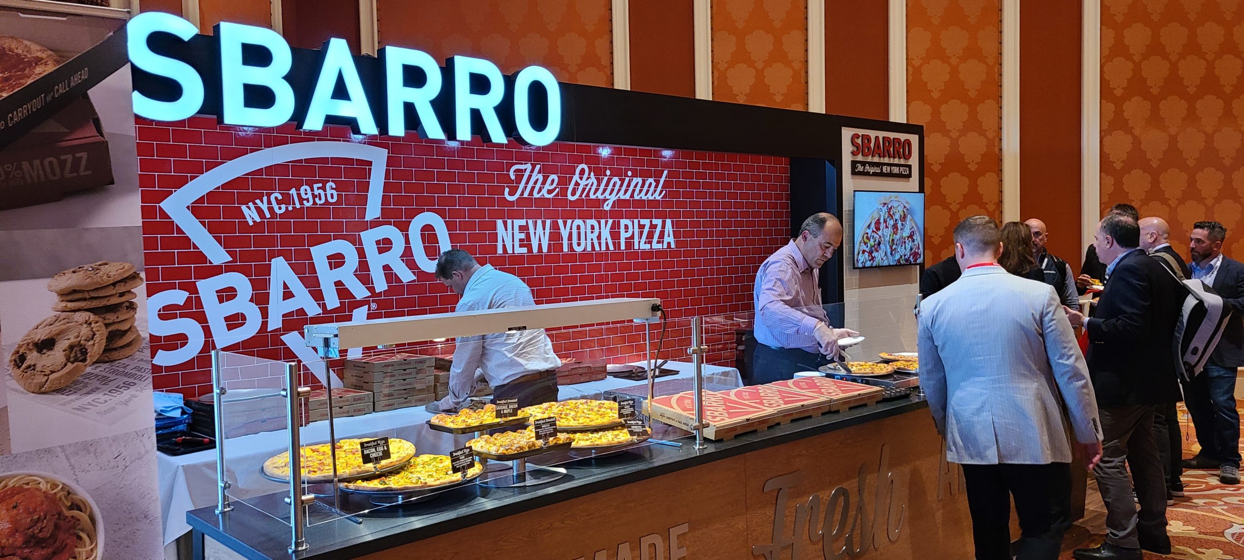 Sbarro’s engaging booth design was centered around the branded custom backsplash, custom cut signage, and lit framing.