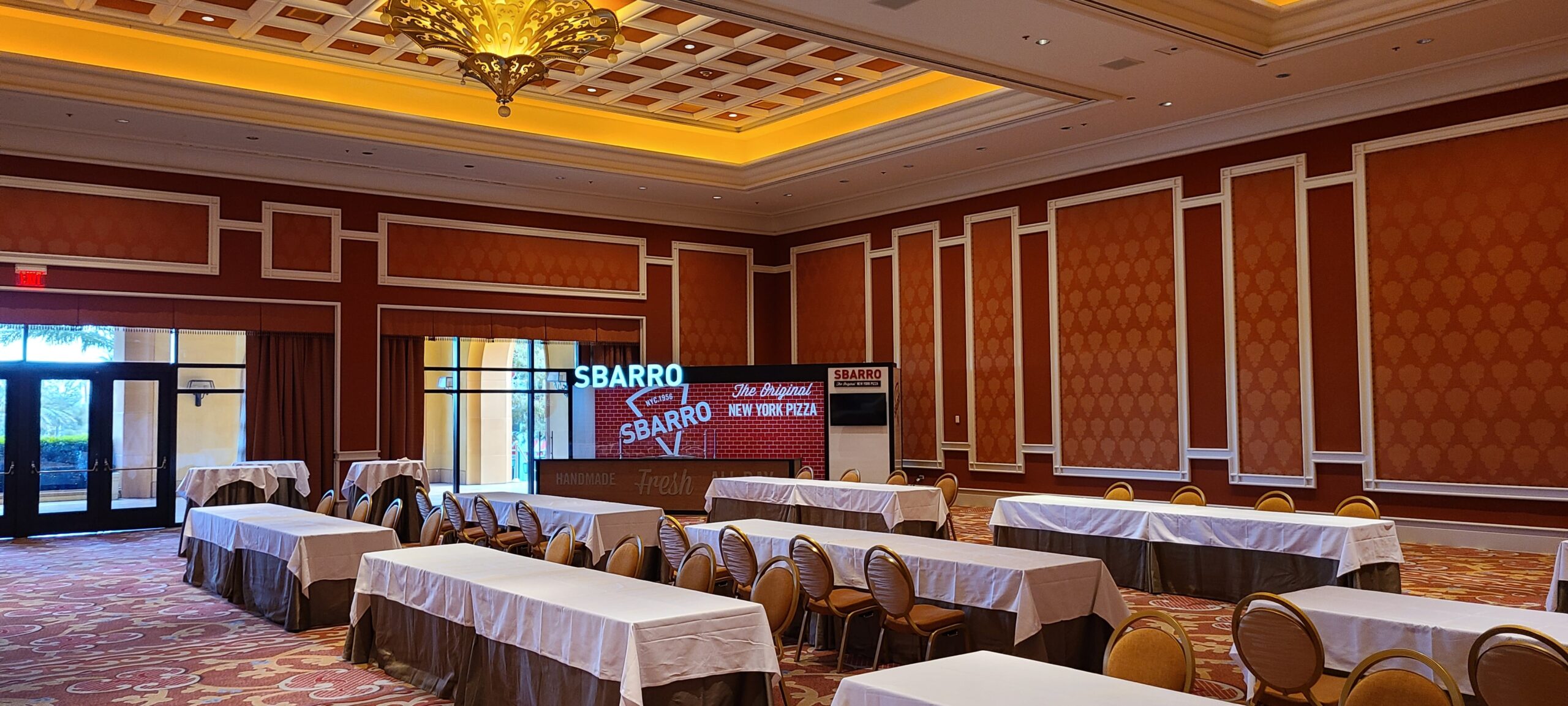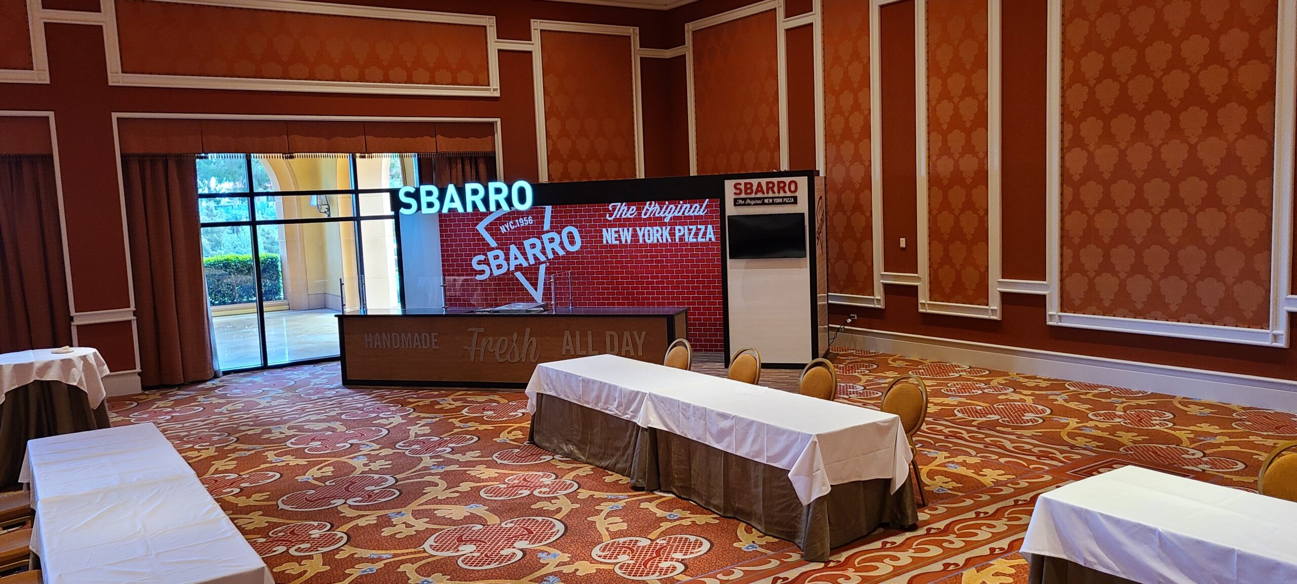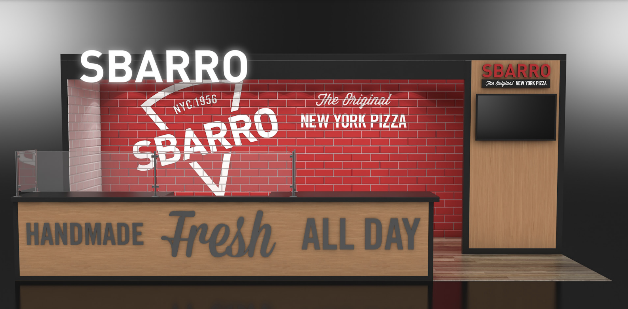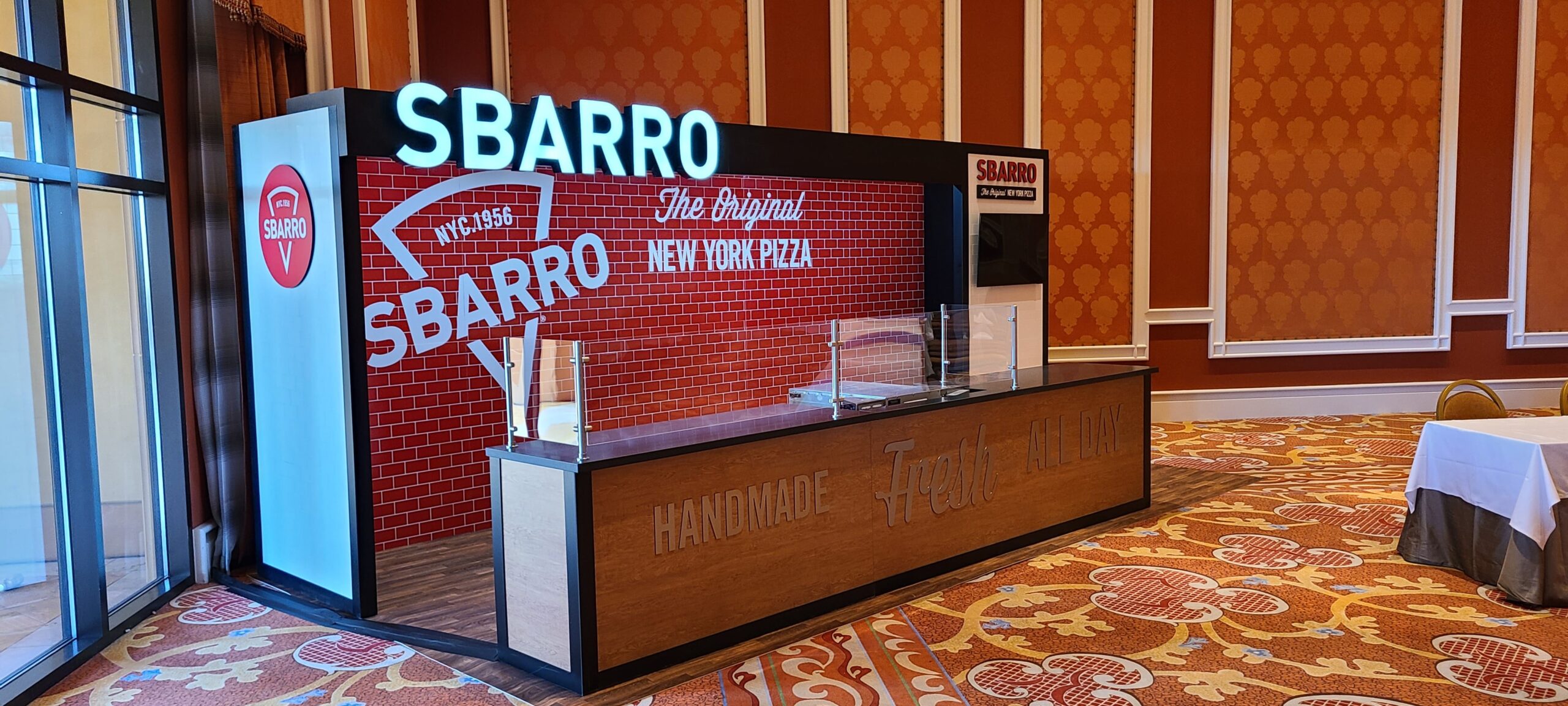 Sbarro’s engaging booth design was centered around the branded custom backsplash, custom cut signage, and lit framing.